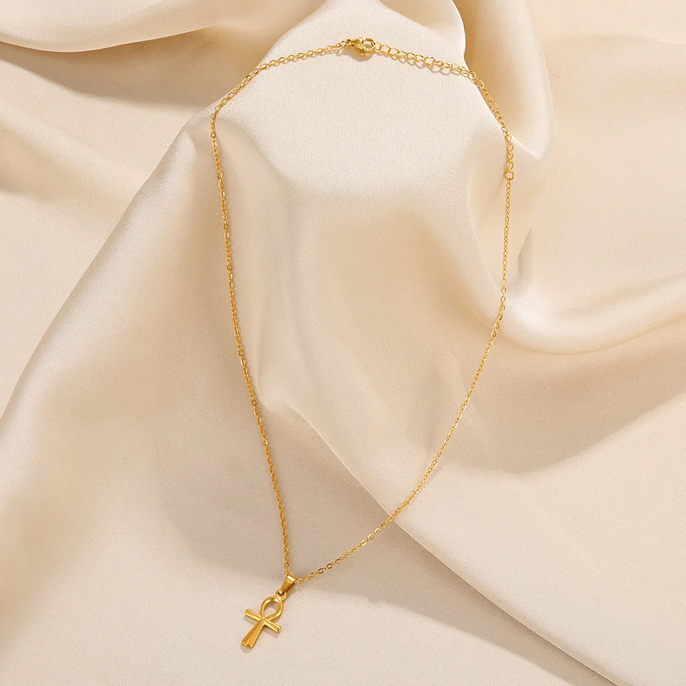 L’élégance intemporelle de la croix de vie, dans un collier conçu pour durer.